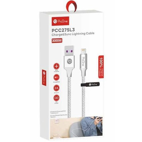 کابل شارژ 3 متری آیفون ProOne مدل PCC275L3